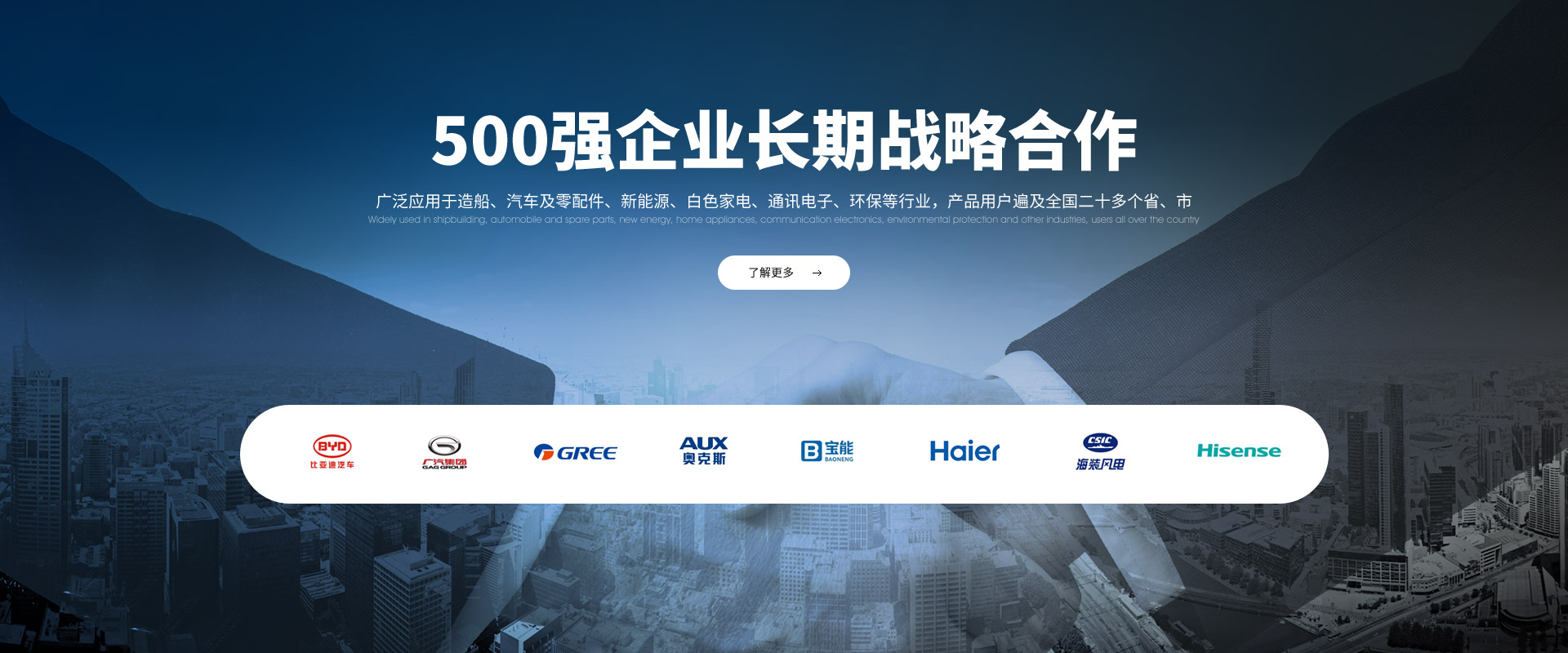 戰(zhàn)略合作伙伴廣泛應用于造船、汽車及零配件、新能源、白色家電、通訊電子、環(huán)保等行業(yè),產品用戶遍及全國二十多個省、市